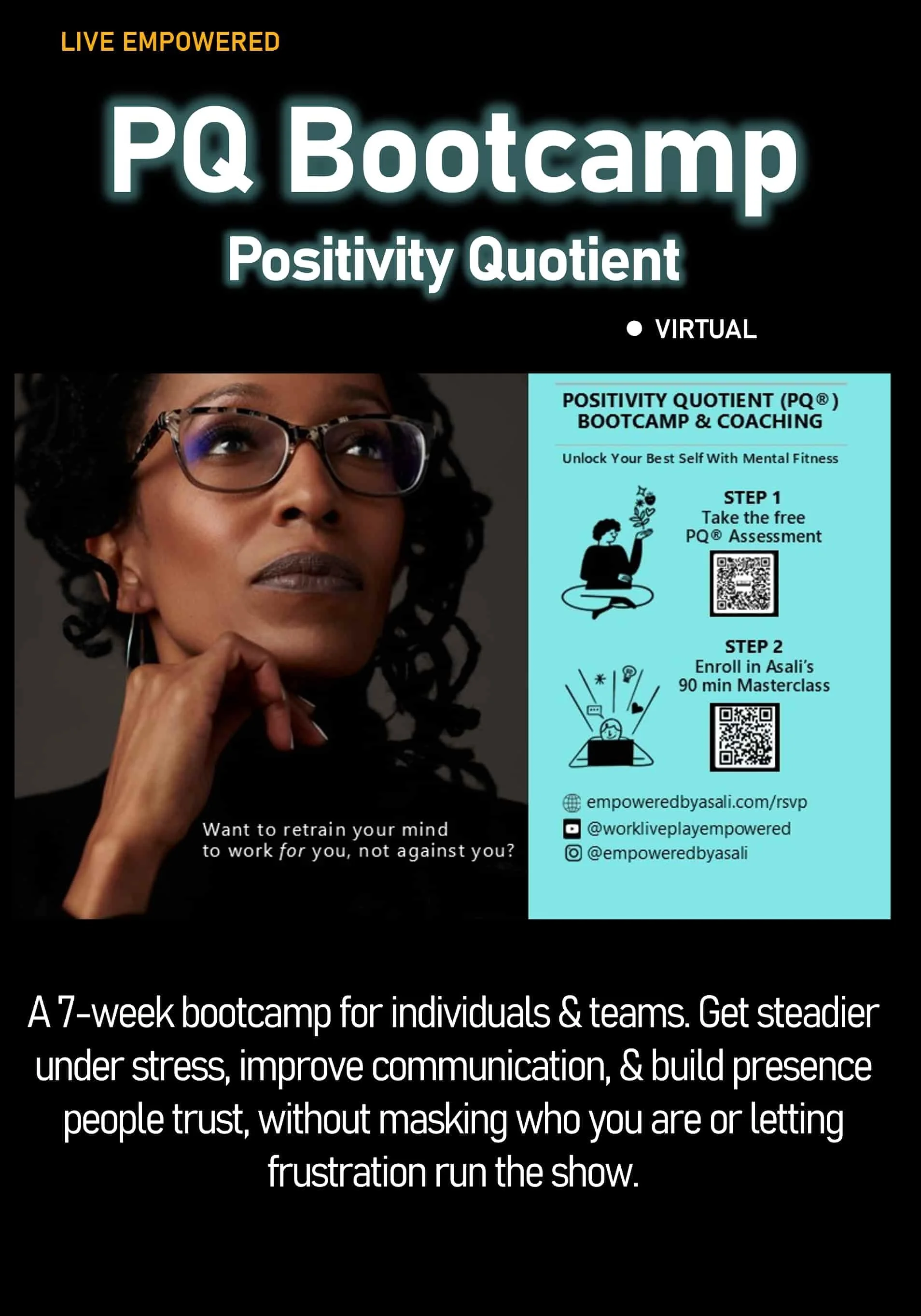 This masterclass introduces the core PQ (Positive Intelligence) tools that help you shift from stress and overthinking into clarity and grounded presence. Perfect for high-achievers, creatives, and professionals ready to reset their thinking habits.